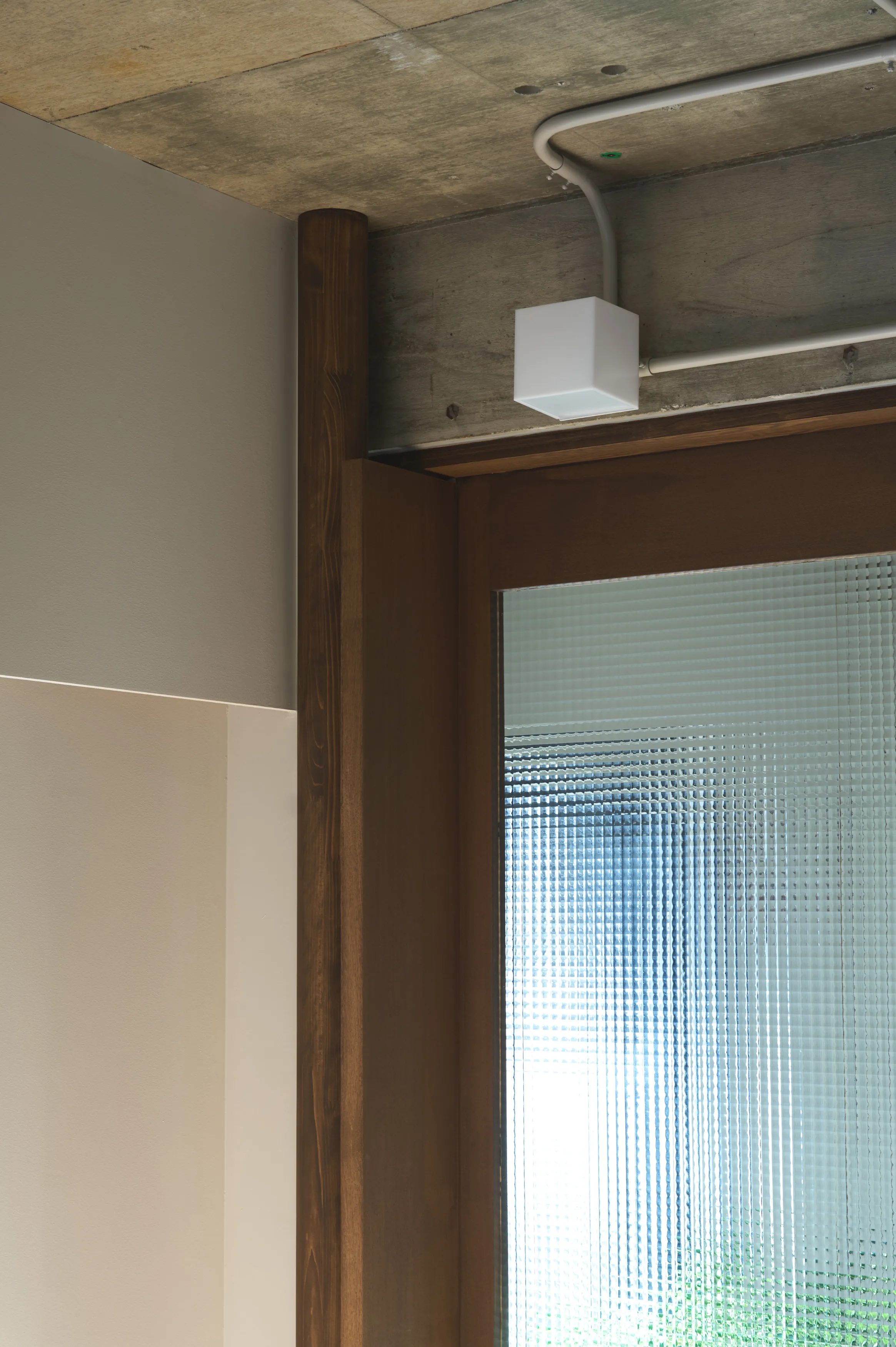 バリアフリーや自然光を取り入れるために計画した回廊型の動線やガラスをはめた引き戸も、こうした不揃いな集まりを引き立てるはたらきを持っているのかもしれない。