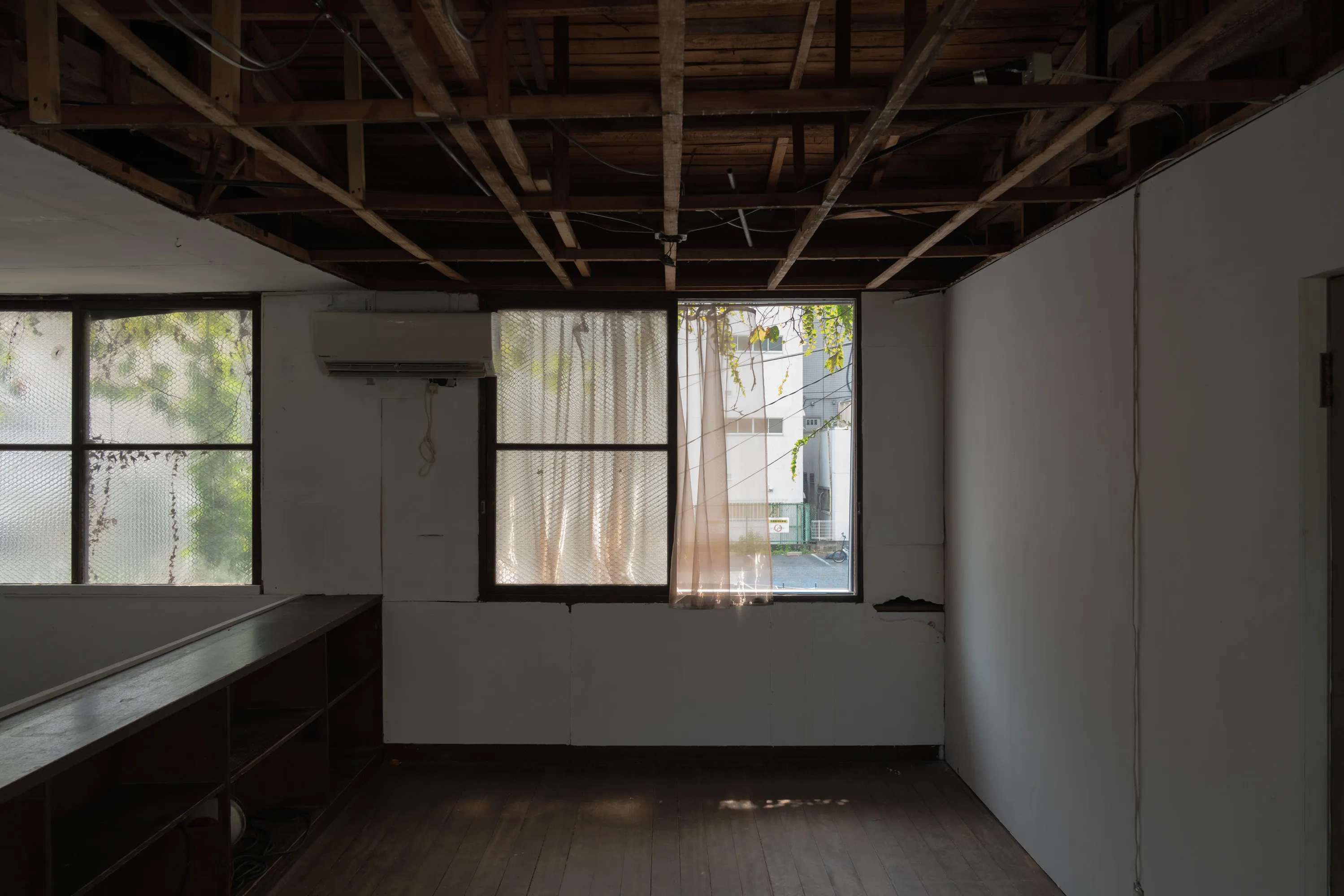 私たちは、ホワイトハウスの2階スペースの環境に手を加えて「ブラッシュアップ」することで、この命題に取り組んだ。既存の窓を保護する覆いとしての新しい窓は、元の開口部を縁取り防音と遮熱の性能を高め、さらに、元の窓の曇りガラスによって隔たれていたホワイトハウス向こうに広がる新宿の景色が姿を現すことになる。