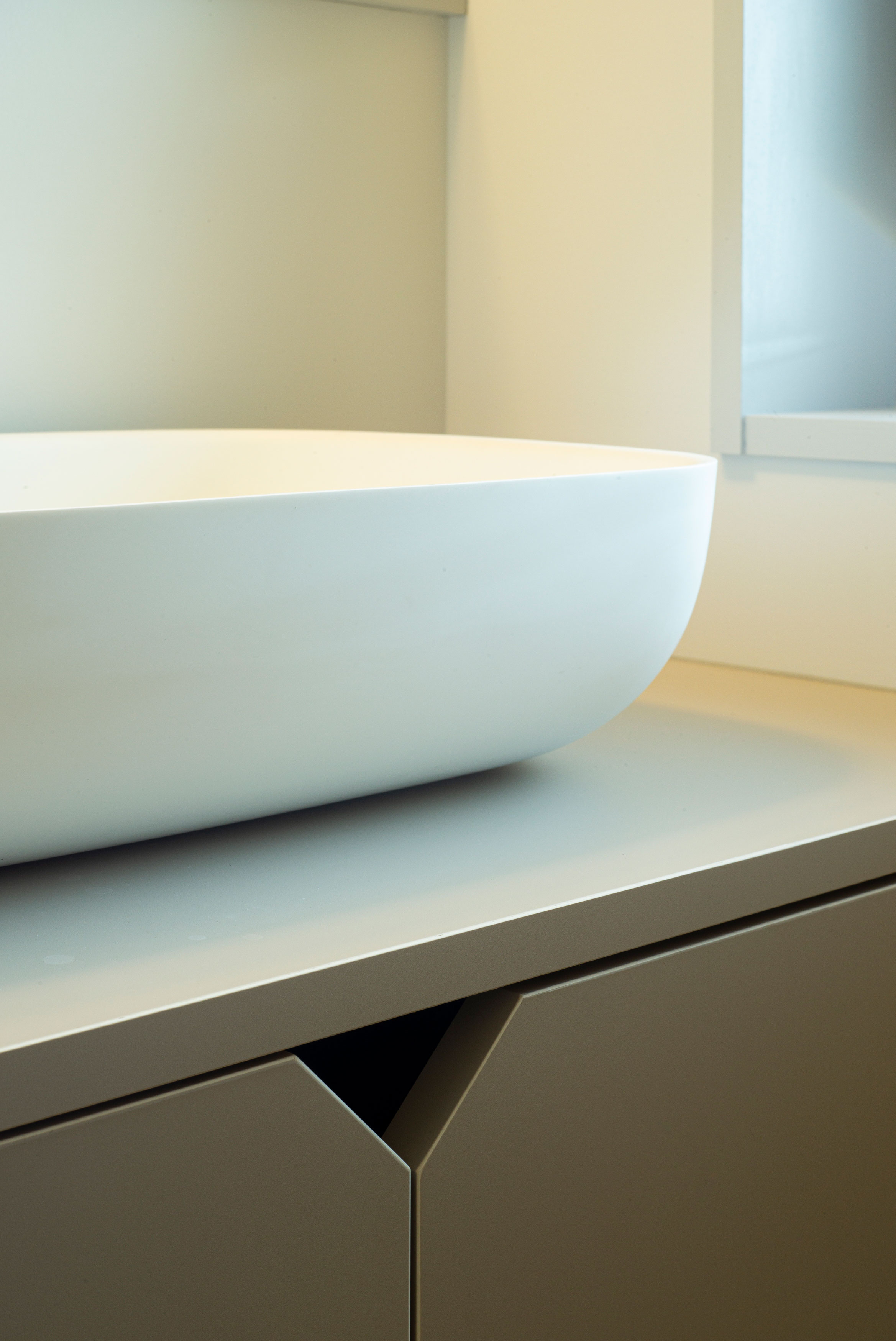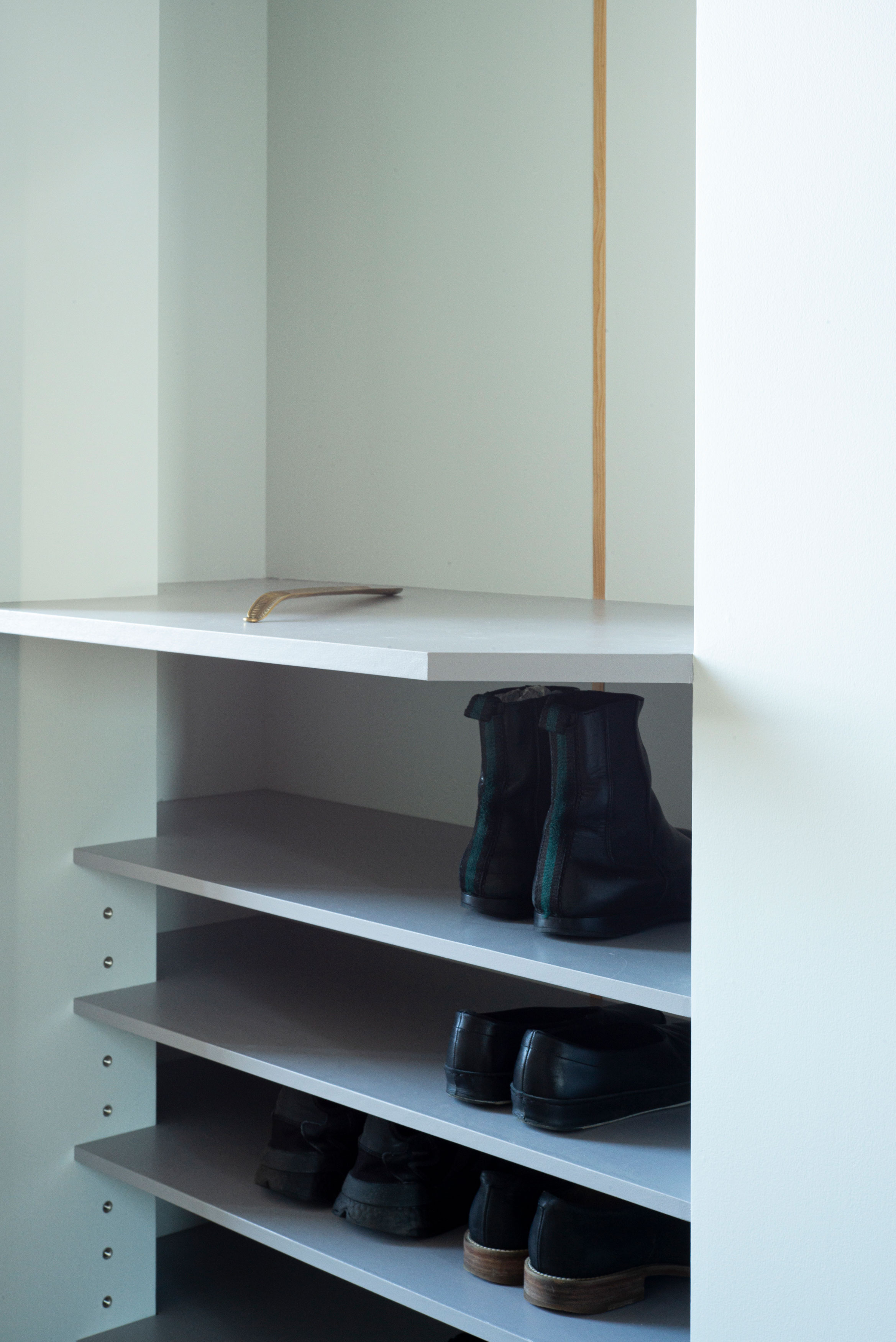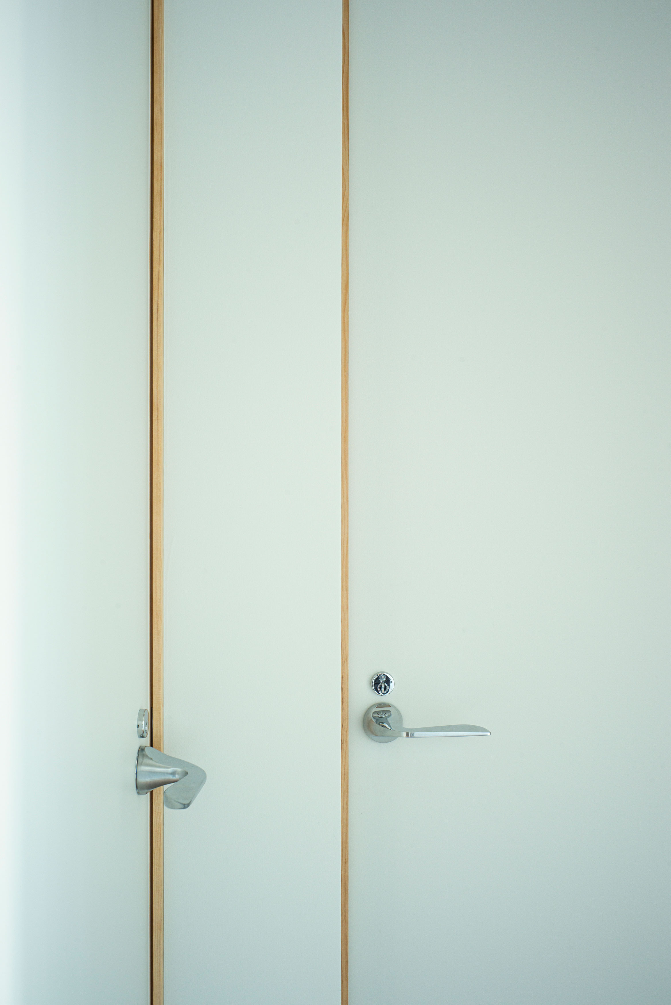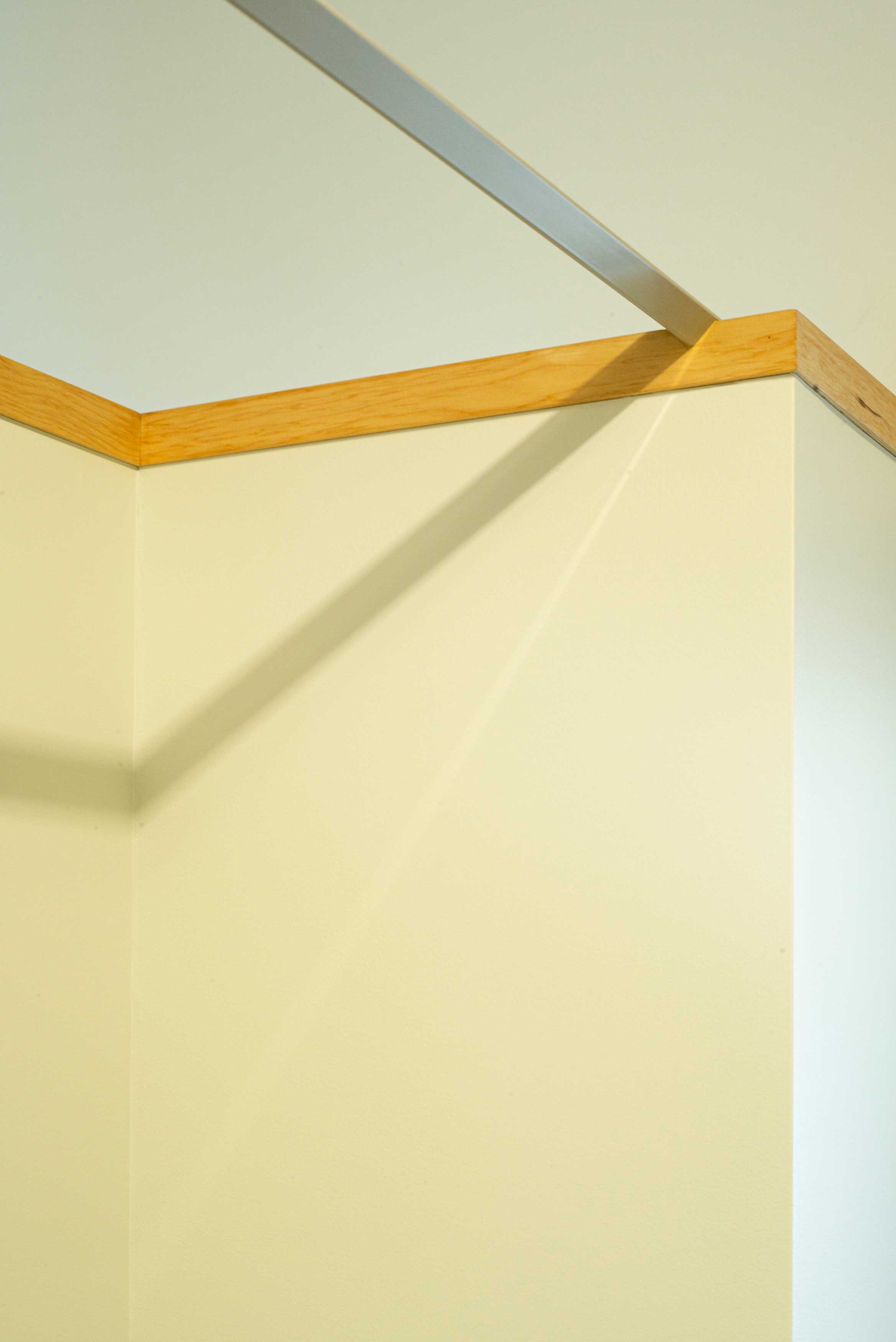 これをできるだけ手数の少ない方法で行おうとするのだが、できるだけ気積を大きくするために取り除いた仕上げの内側からは、柱と梁と設備らの複雑な絡まりが現れた。部屋のどこにいてもつねに視界の端に入ってくるさまざまなディテールや柱や梁の現れが、空間の使い方や領域の感じられ方に相対的に大きく作用してくるため、スタディの中心はこの調停に当てられた。したがって取りうる方法としては、ひとまず何かを解決するために考えたディテールのスタイルを反復したり流用したりして全体にまとまりがつくれないかを試すことになる。しかし、それがかえってうるさくなったり別の解決策を阻んだりするので、再びそれらの解決策を講じる作業を延々繰り返すことになる。
